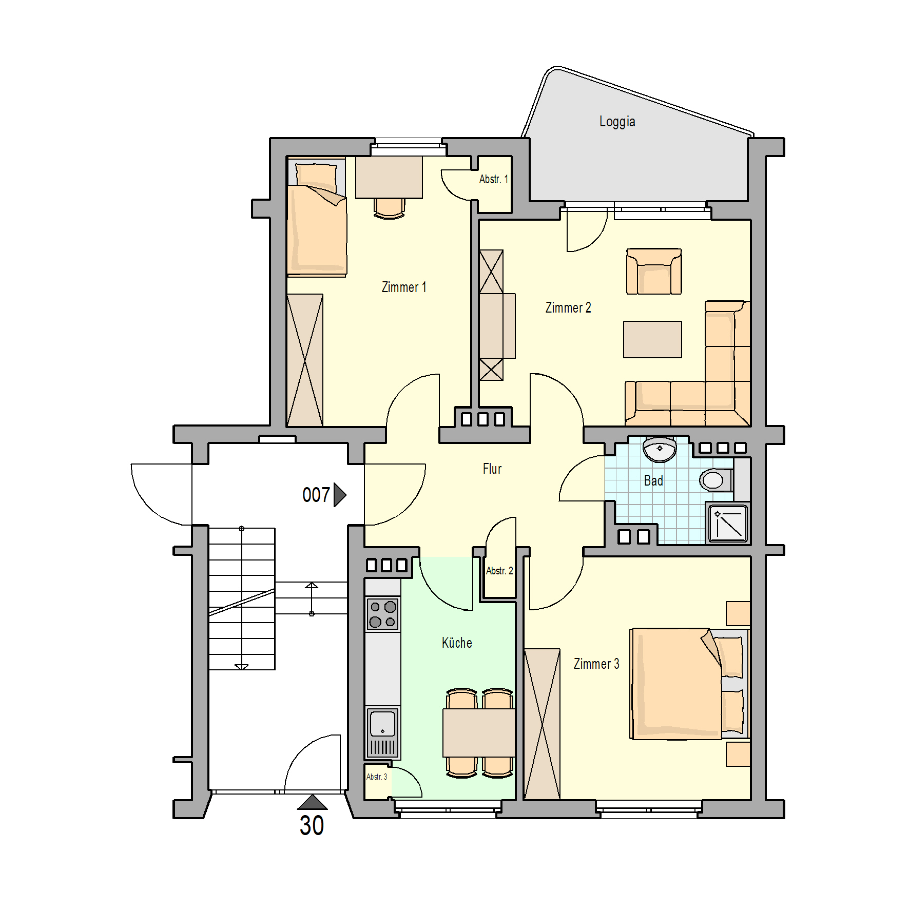 "Auf der Steinrausch" - sanierte 3 Zimmer, Küche, Bad Wohnung mit Loggia!
